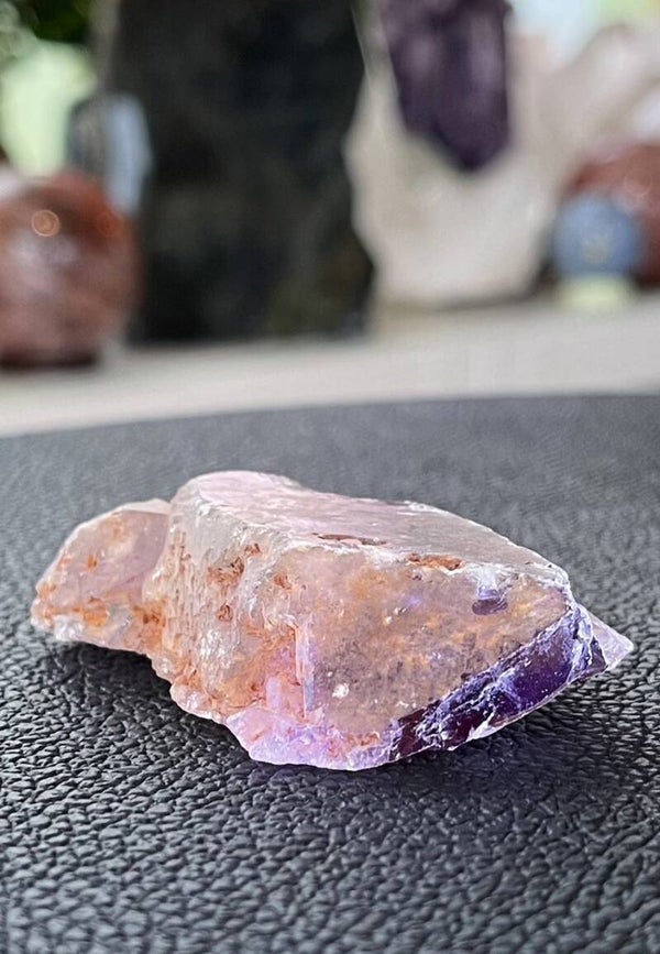 Ametrien bestaat uit een combinatie van Amethist en Citrien en verenigt de eigenschappen van deze twee stenen in zich. De opbeurende en verwarmende energie van Citrien en de beschermende en zuiverende werking van Amethist. Geeft innerlijke rust en gelatenheid.