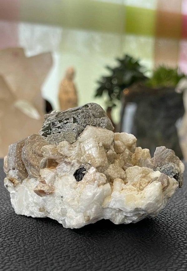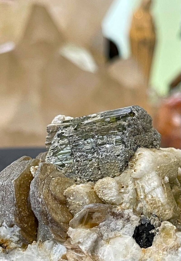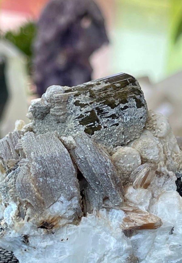 Groene Toermalijn met mica op matrix uit Pakistan ruw, medium