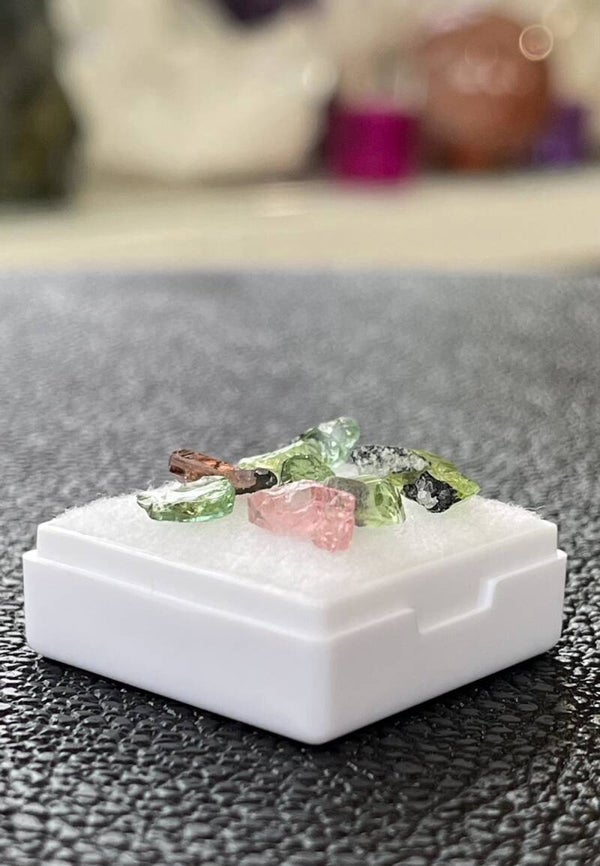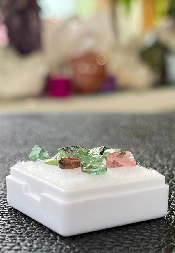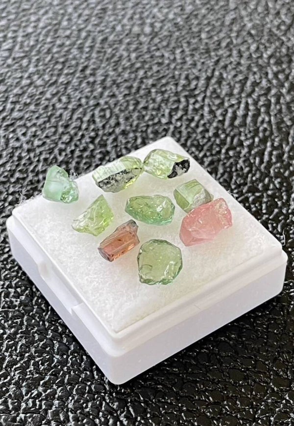 Toermalijn groen en roze ruw uit Brazilië 9 stuks, klein