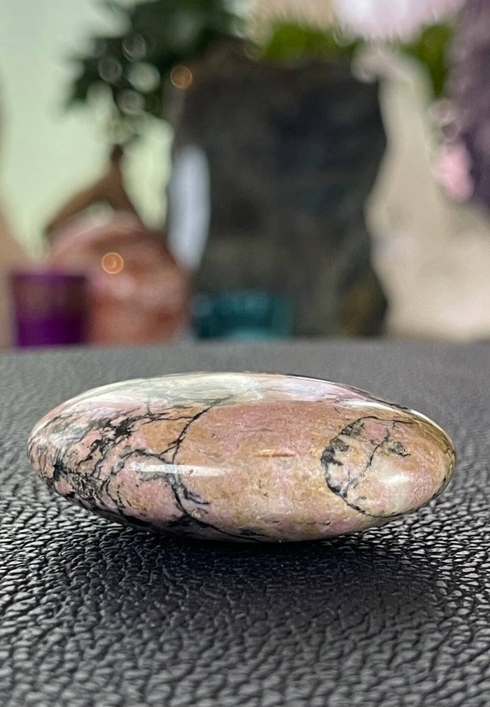 Rhodoniet knuffelsteen plat, groot