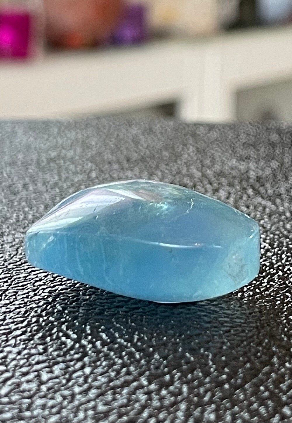 Fluoriet werkt beschermend, reinigend en stabiliserend. Beschermt tegen negatieve energie, straling van bijvoorbeeld mobiele telefoons en computers en andere negatieve invloeden van buitenaf.