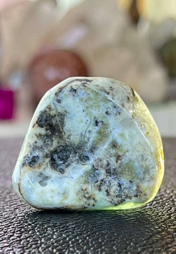 Chrysopraas stimuleert een positieve houding, acceptatie en vertrouwen in zowel jezelf als het grotere geheel. De steen versterkt creativiteit en waardering voor mooie dingen en kunst.