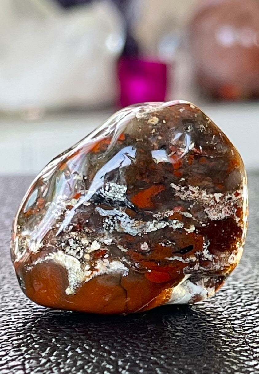 Het helpt je in je kracht staan en bevordert wilskracht en doorzettingsvermogen. Breccie Jaspis heeft een positieve werking op het bloed, werkt ontgiftend, stimuleert de werking van de lever en de stofwisseling.
