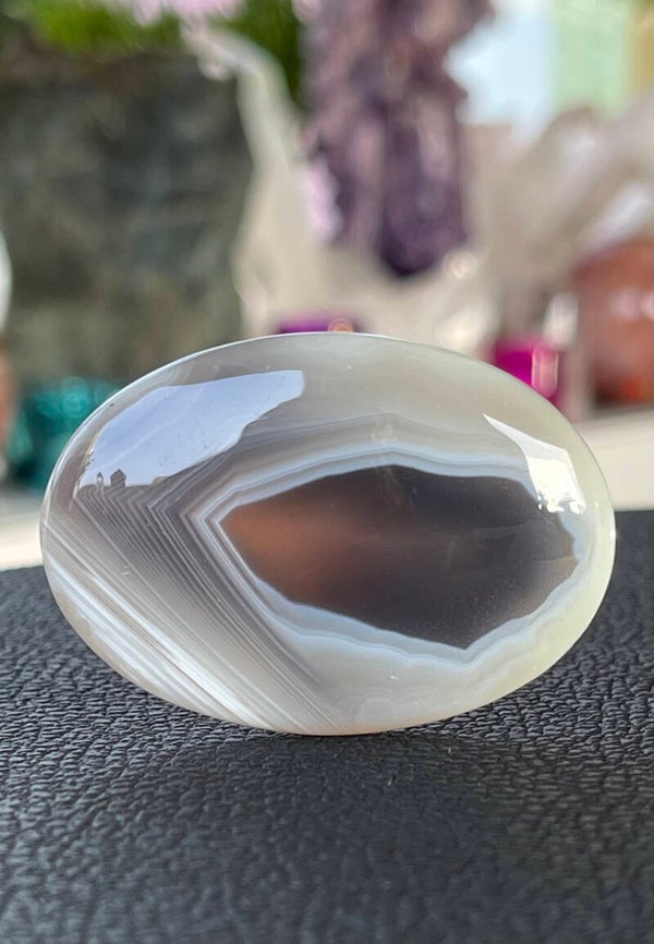 Botswana Agaat werkt, naast de algemene eigenschappen van Agaat beschermend en troostend. Het ondersteunt bij emotionele pijn, eenzaamheid, stress, piekeren en depressieve gedachten. Het helpt angst en obsessieve gedachten loslaten.