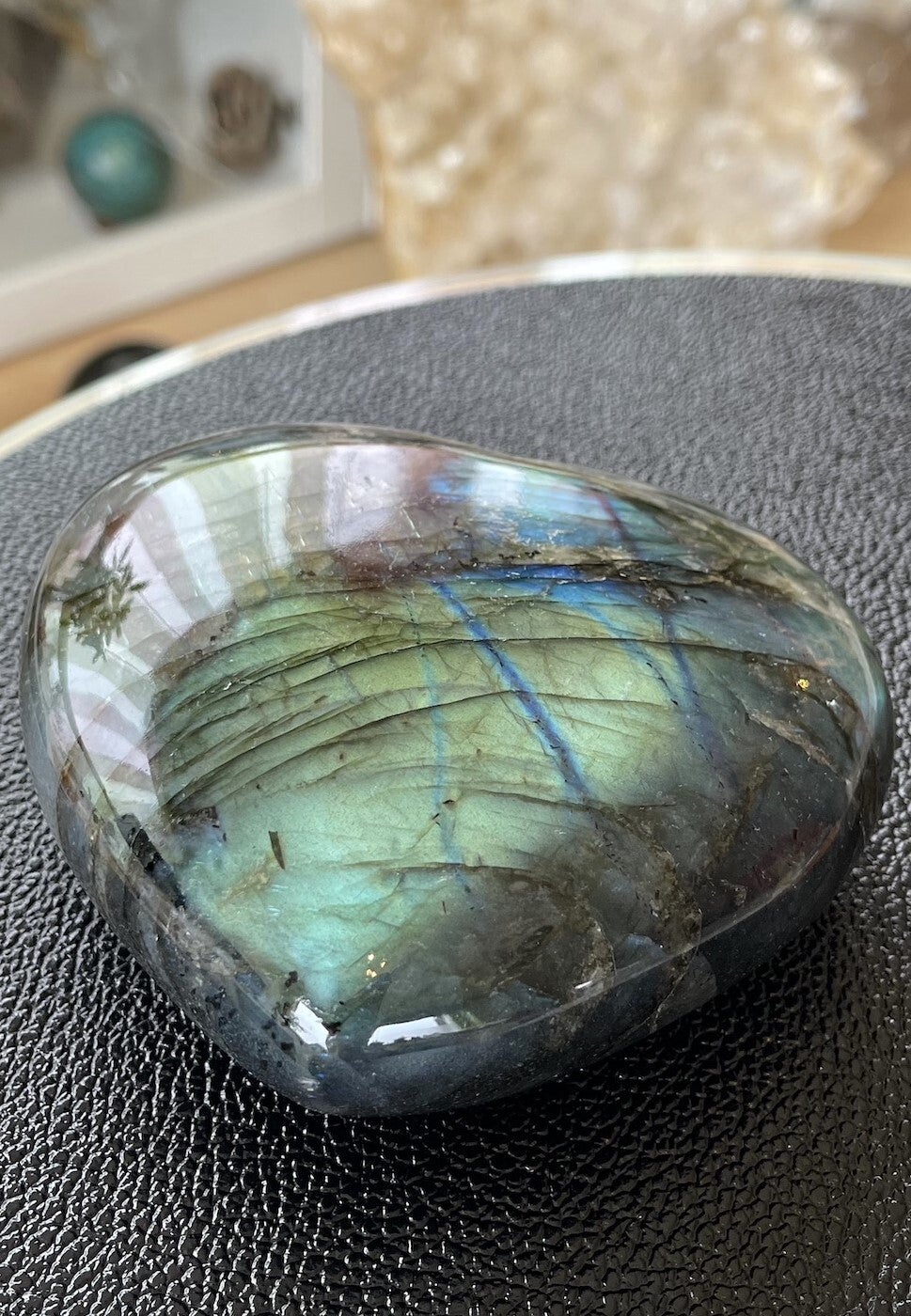 Labradoriet werkt beschermend en vergroot geestelijke kracht. Het reinigt en versterkt de aura en beschermt je tegen onder andere negatieve energie, negatieve mensen, mensen die energie zuigen, entiteiten en overprikkeling. Het is daardoor ook een heel geschikte steen voor hooggevoelige of hoogsensitieve mensen. Het vermindert stress en angst en helpt je in je kracht staan.