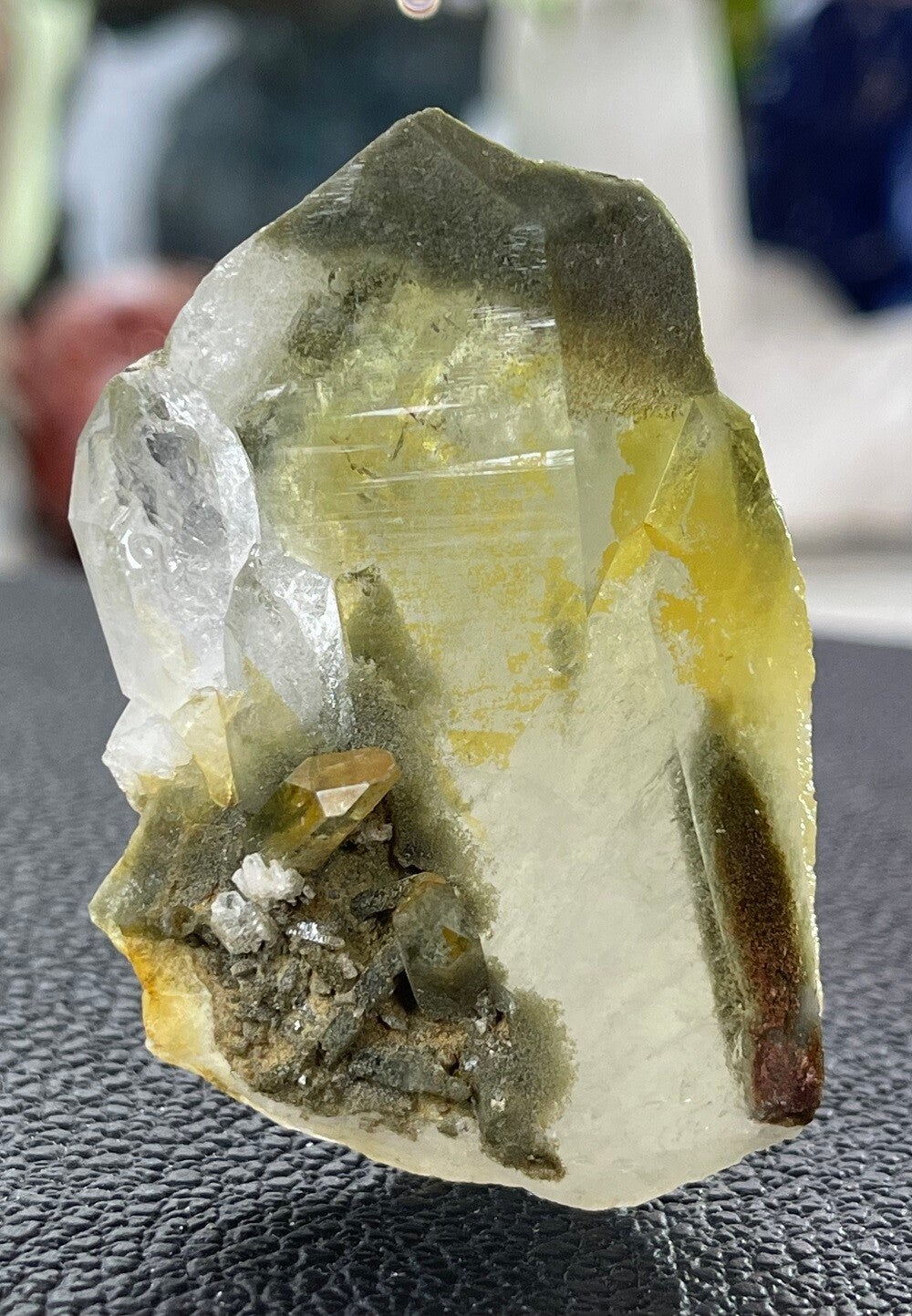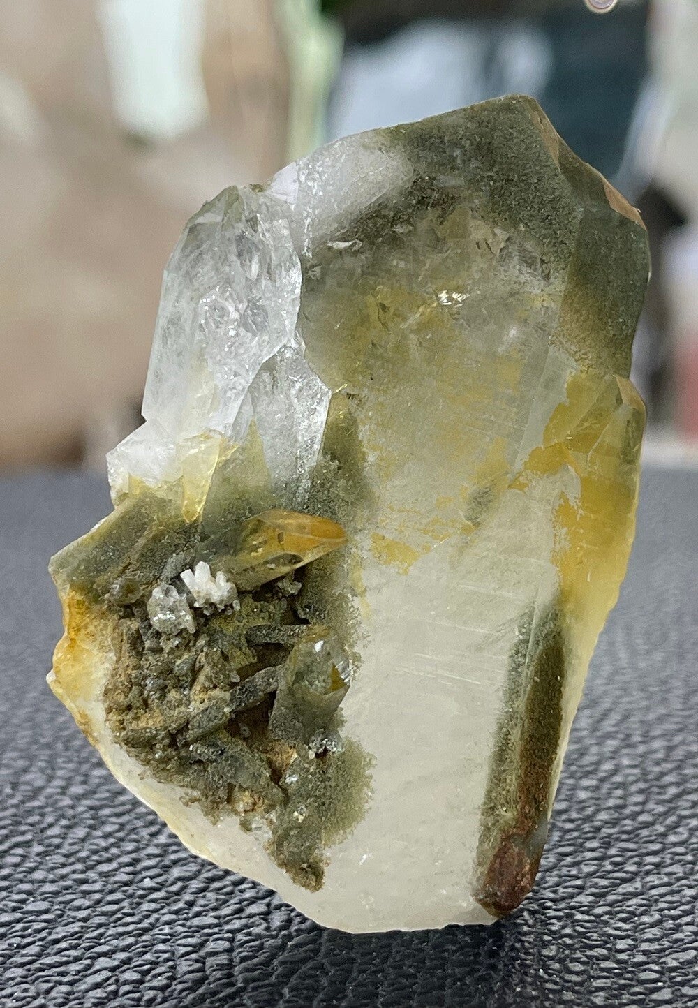 Clusterpunt Chloriet in Kwarts met Chloriet puntjes, ruw klein