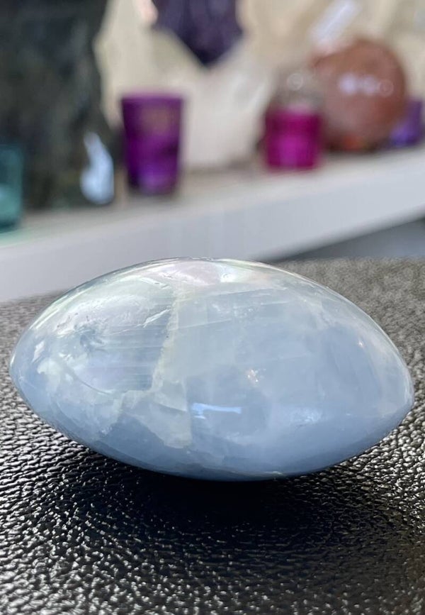 In een ruimte zorgt Blauwe Calciet ervoor dat we beter met elkaar kunnen omgaan. Het beschermt tegen negatieve energie en bevordert de communicatie.