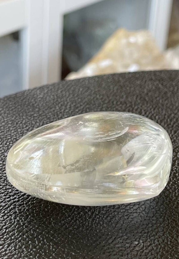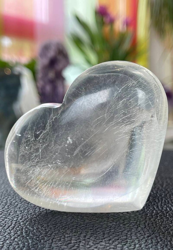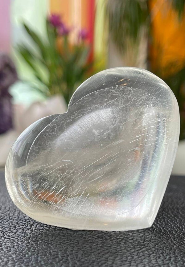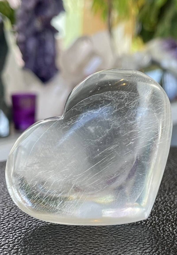 Transparant Seleniet hartje, mooie kwaliteit met een prachtige glans in de steen, medium