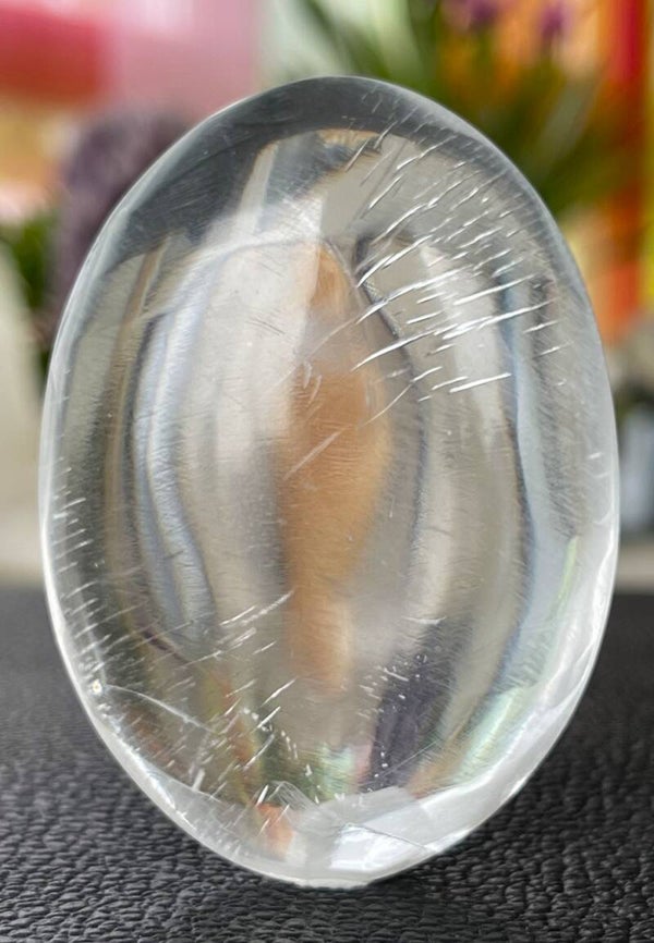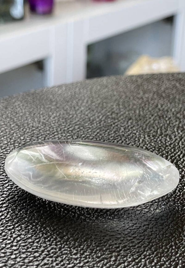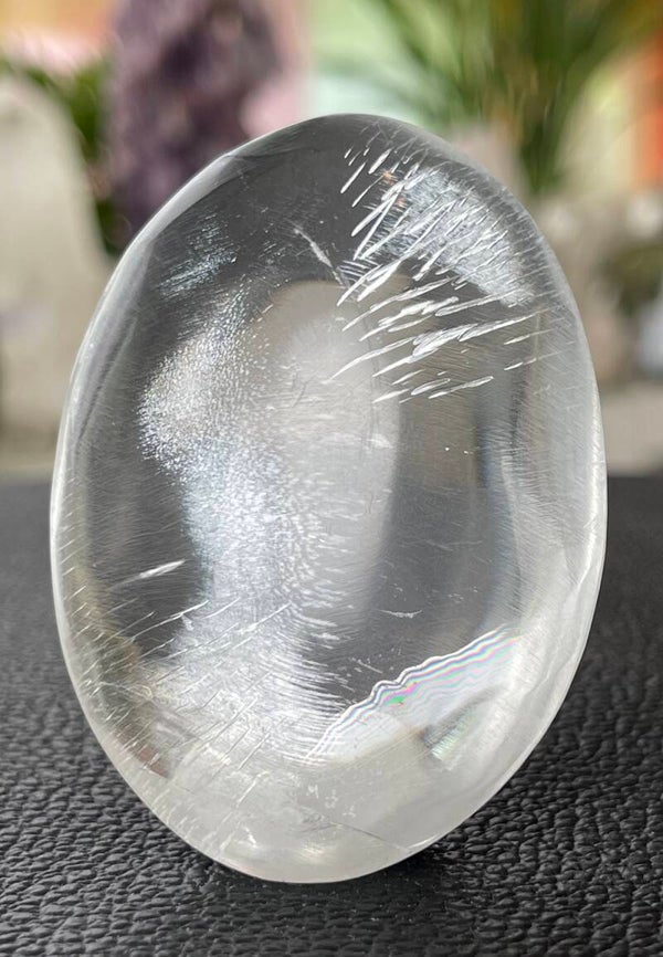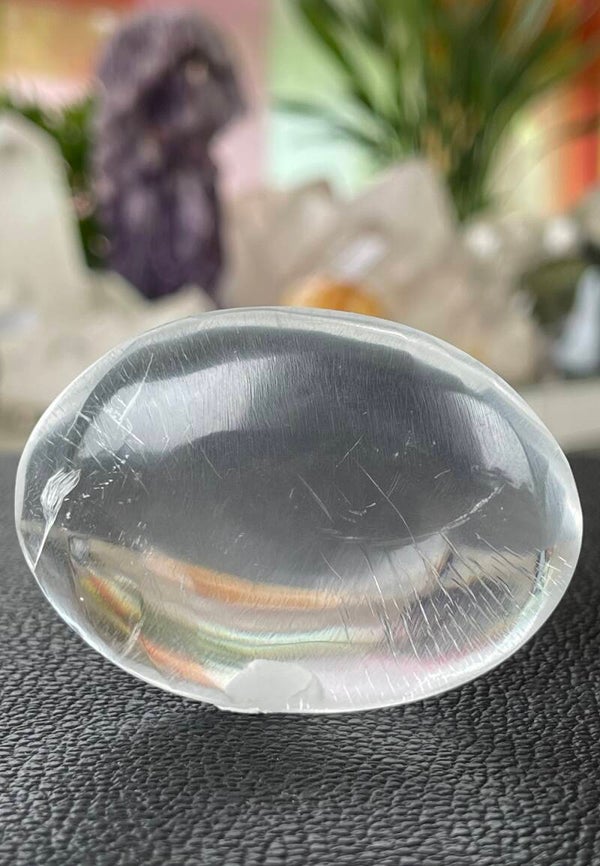 Heldere Seleniet redelijk platte handsteen, met een mooie glans in de steen, prachtige kwaliteit
