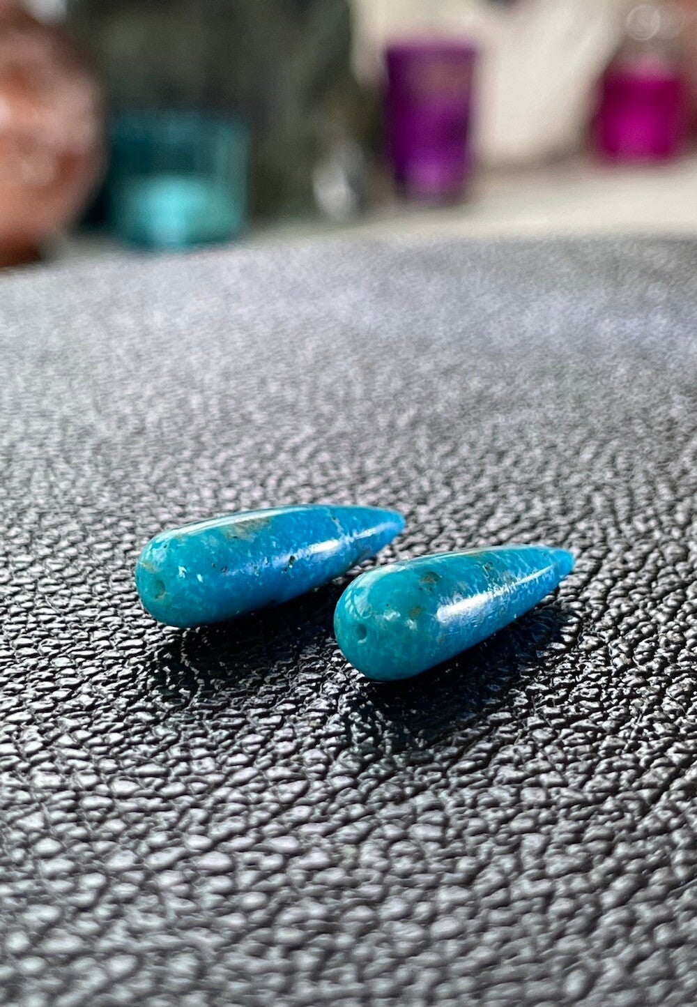 Arizona Turkoois edelstenen cabochon doorboorde druppels, per paar, set van 2, medium