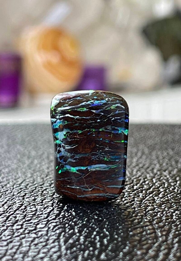 Boulder Opaal is een steen van vooruitgang, expansie en ontwikkeling. Hij verheldert de aura en stimuleert genezing van gebieden waar de aura donker is. Bevordert de communicatie tussen je Oorspronkelijke Zelf, Hogere Zelf en jij als persoon en helpt je duidelijk te krijgen wat je doel op aarde is, wat je verlangens hier zijn.