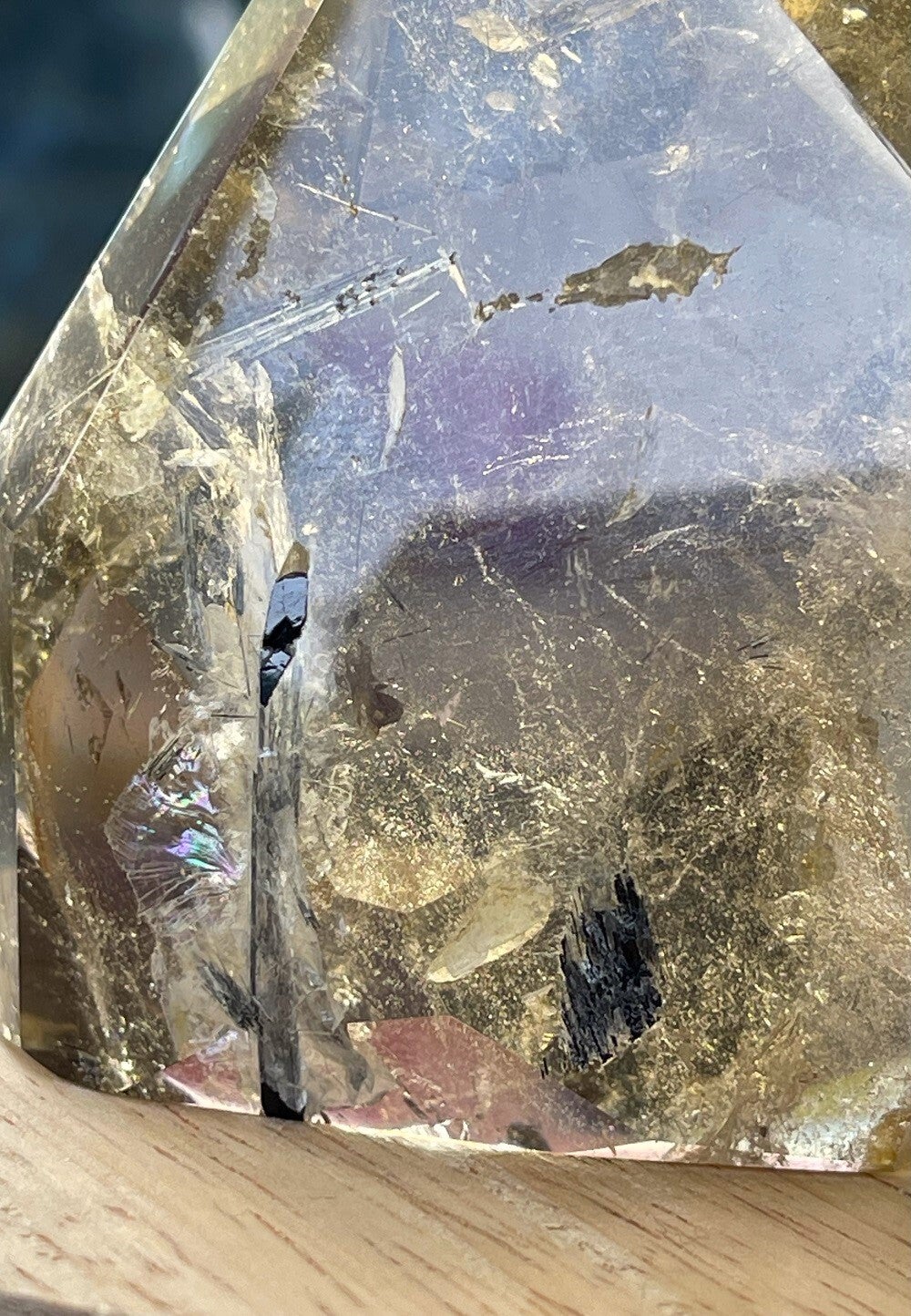 Rookkwarts met Toermalijn free form punt gepolijst, medium