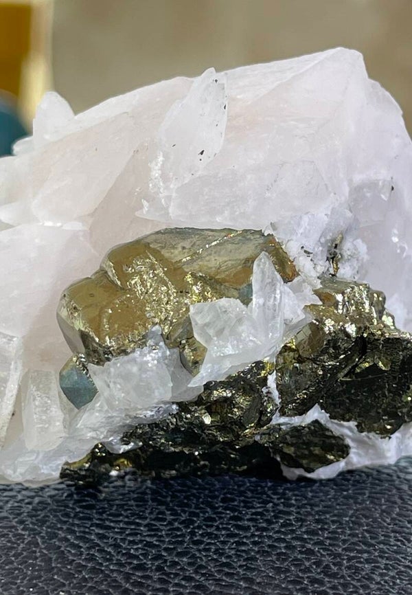 Mangano Calciet op Pyriet en Kwarts uit Peru ruw, medium
