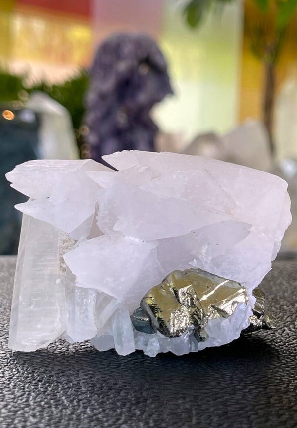Calciet stimuleert analytisch denken, bevordert de concentratie en trekt succes aan. Het kan negatieve energie uit een ruimte absorberen (regelmatig reinigen).