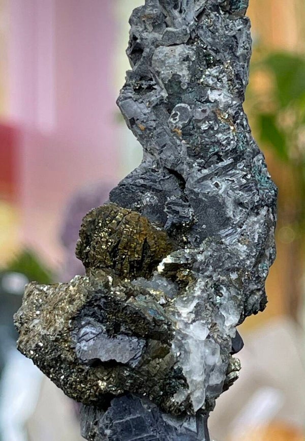 Pyriet Galeniet Chalcopyriet en Kwarts uit Marokko ruw, klein-medium