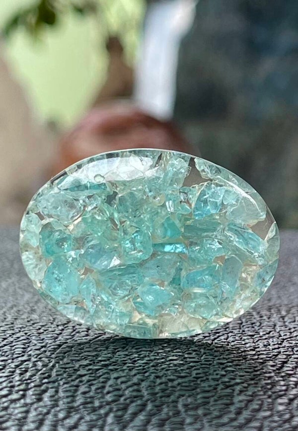 Samengestelde Apatiet edelsteen cabochon met vlakke achterkant ovaal, medium