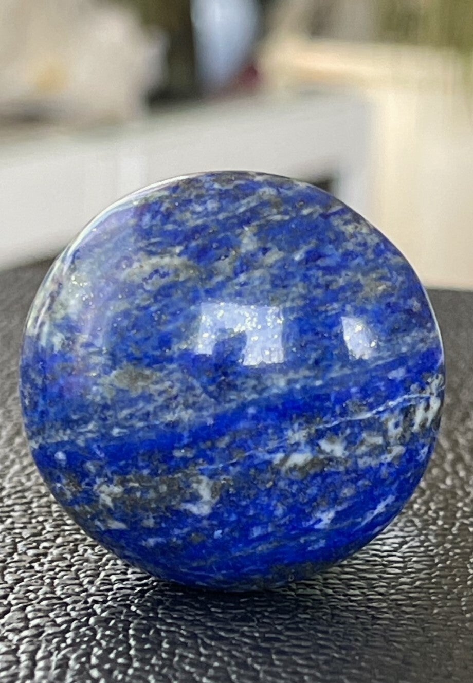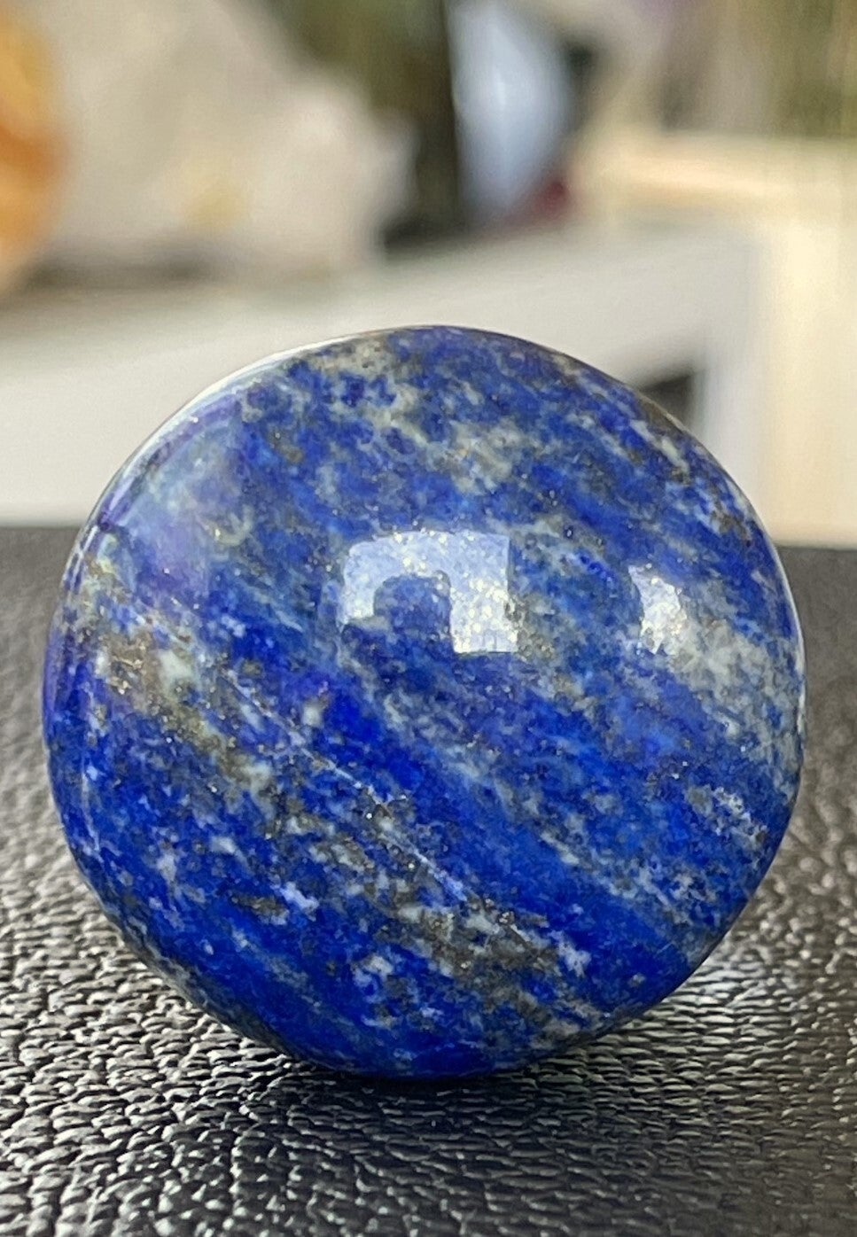 Lapis Lazuli met Pyrieet platte knuffelsteen of zaksteen, rond, een soort platte bol of kussenmodel