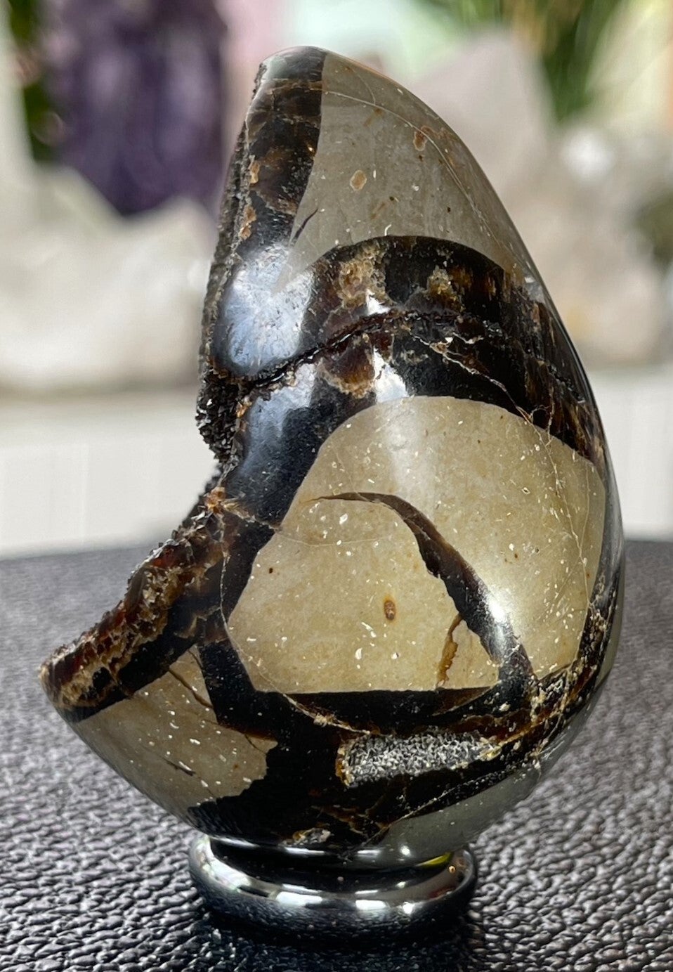 Septarie is een aardende, zuiverende en kalmerende steen met een sterke connectie met de aarde en de natuur. Helpt bij ergernis en frustratie, bij verbittering. De steen bevordert eigenwaarde, daadkracht, uithoudingsvermogen, geduld, tolerantie en zorgzaamheid.