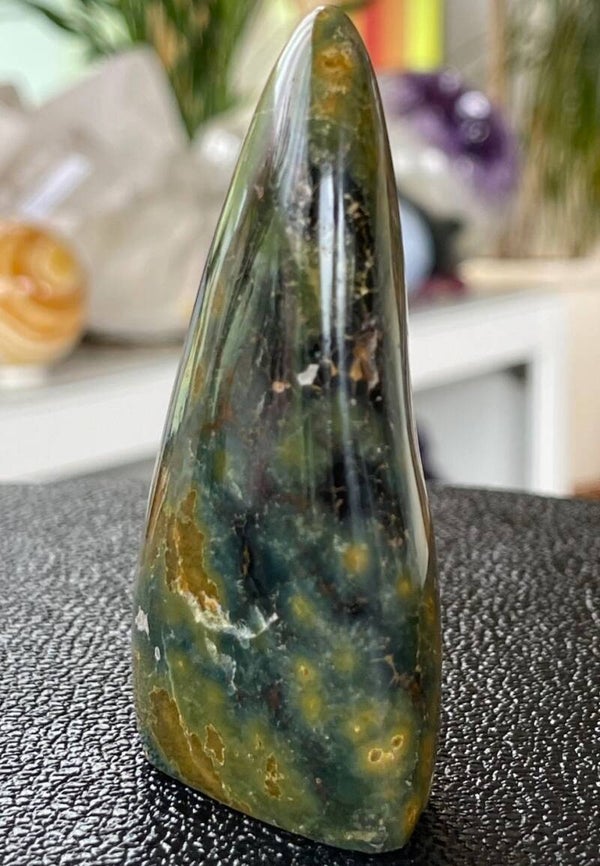 Ocean Jaspis free form sculptuur, gepolijst, kan staan, medium