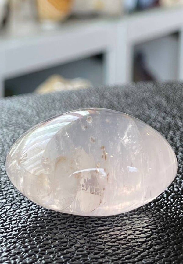 Mooie heldere Rozenkwarts knuffelsteen of zaksteen, dik kussenvormig model