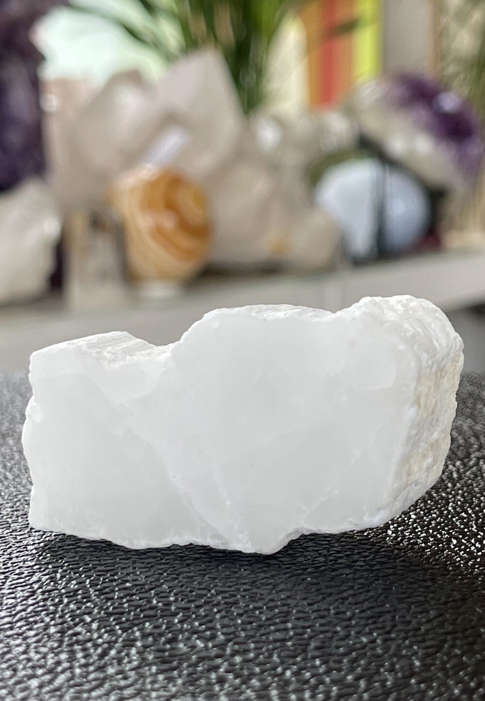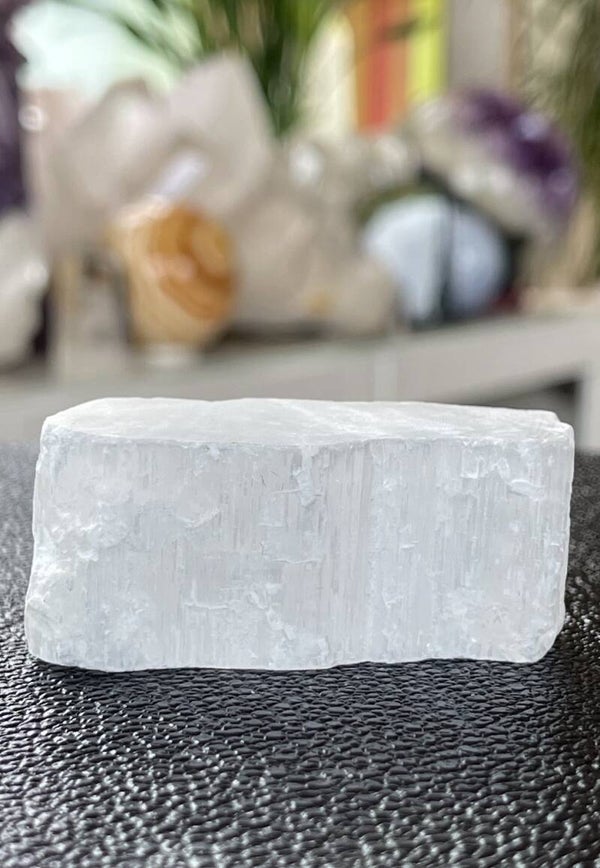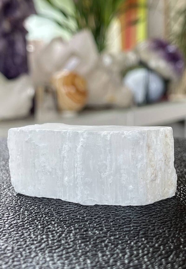 Het werkt aardend als met hogere energieën gewerkt wordt en beschermt en reinigt de aura. Seleniet stimuleert een heldere geest en geeft inzicht in je levenslessen. Het bevordert rust, balans en vrede in jezelf en je omgeving. Ook een goede steen om kristallen en edelstenen te reinigen, leg ze bij of op de steen.
