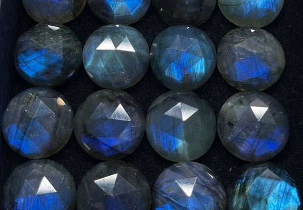 Labradoriet edelsteen checker facet geslepen rond, per paar, medium