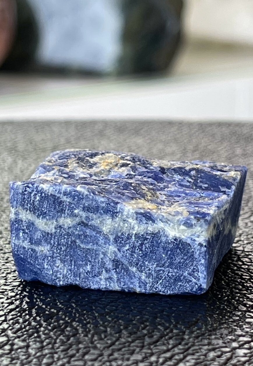 Prachtig stukje Sodaliet uit Namibië met ruwe bovenkant, achterkant vlak, rechthoekig gesneden, mooie glans, klein
