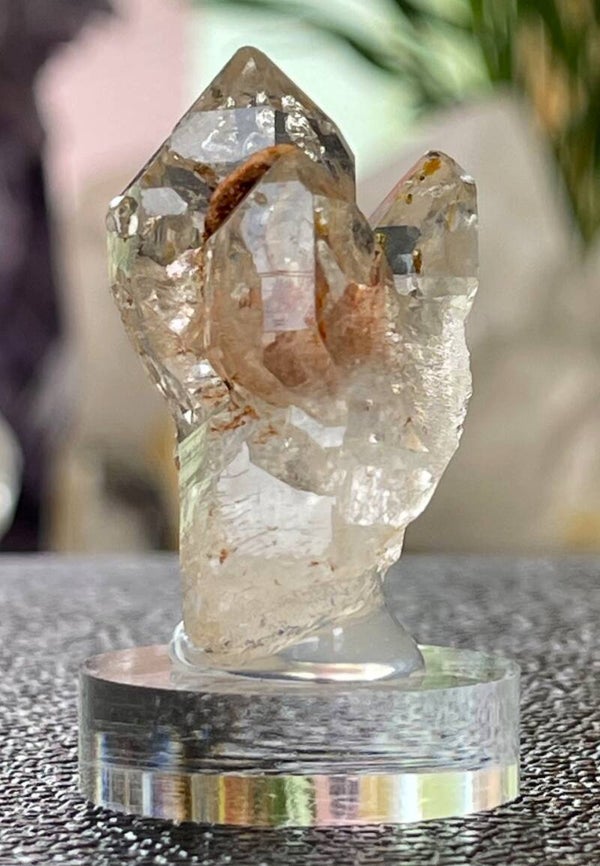 Vensterkwarts met drie samengegroeide puntjes ruw, uit Andranotokana Massif, Andilamena, Alaotra-Mangoro, Madagascar