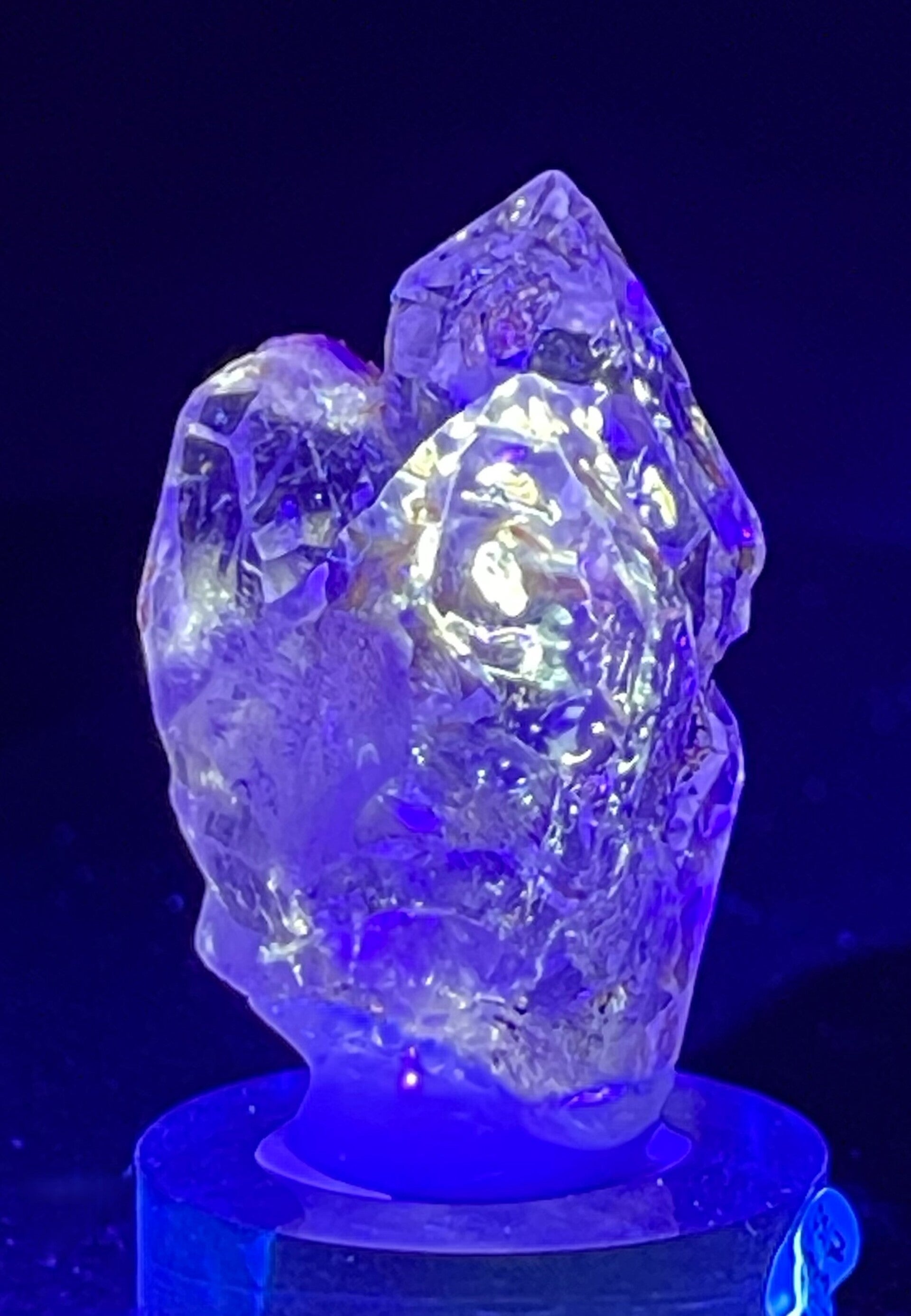 Het is een fluorescerende steen die onder UV-licht geelgroen oplicht. Een prachtig kristal waar petroleum in zit en wat in de vorm van een natuurlijk puntje, kathedraal, elestiaal, dubbeleinder, of zelfs sceptervorm voorkomt.