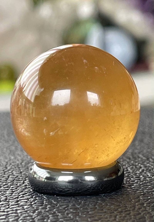 Prachtige goudkleurige Honing Calciet bol met mooie glans, klein