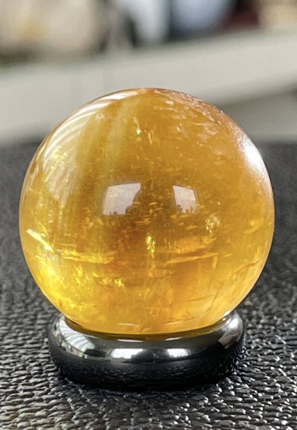 Prachtige heldere goudkleurige Honing Calciet bol met mooie glans, klein