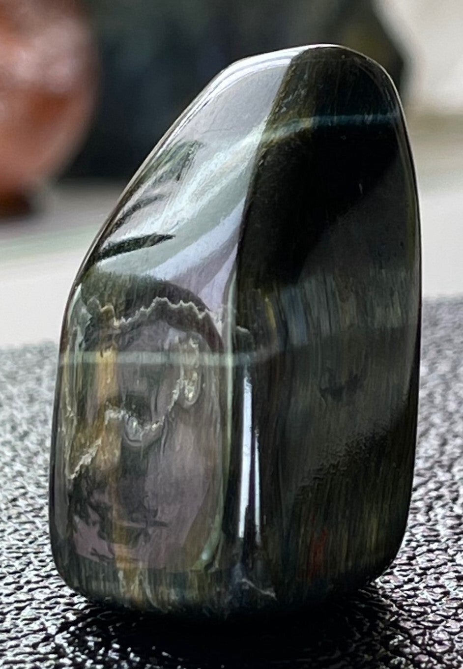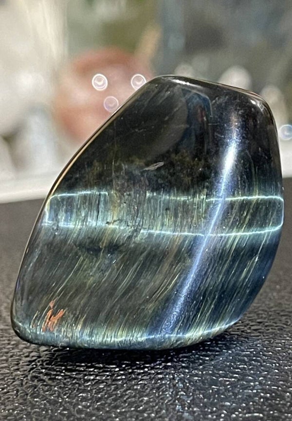 Spiritueel werkt de steen aardend en emotioneel beschermend en bevordert helderziendheid en mediamieke gaven. Valkenoog remt de energiestroom en vermindert hiermee stress, nervositeit, beven, overmatige hormoonproductie en hyperactiviteit. De steen vertraagt de stofwisseling en remt een overmatige seksuele drang.