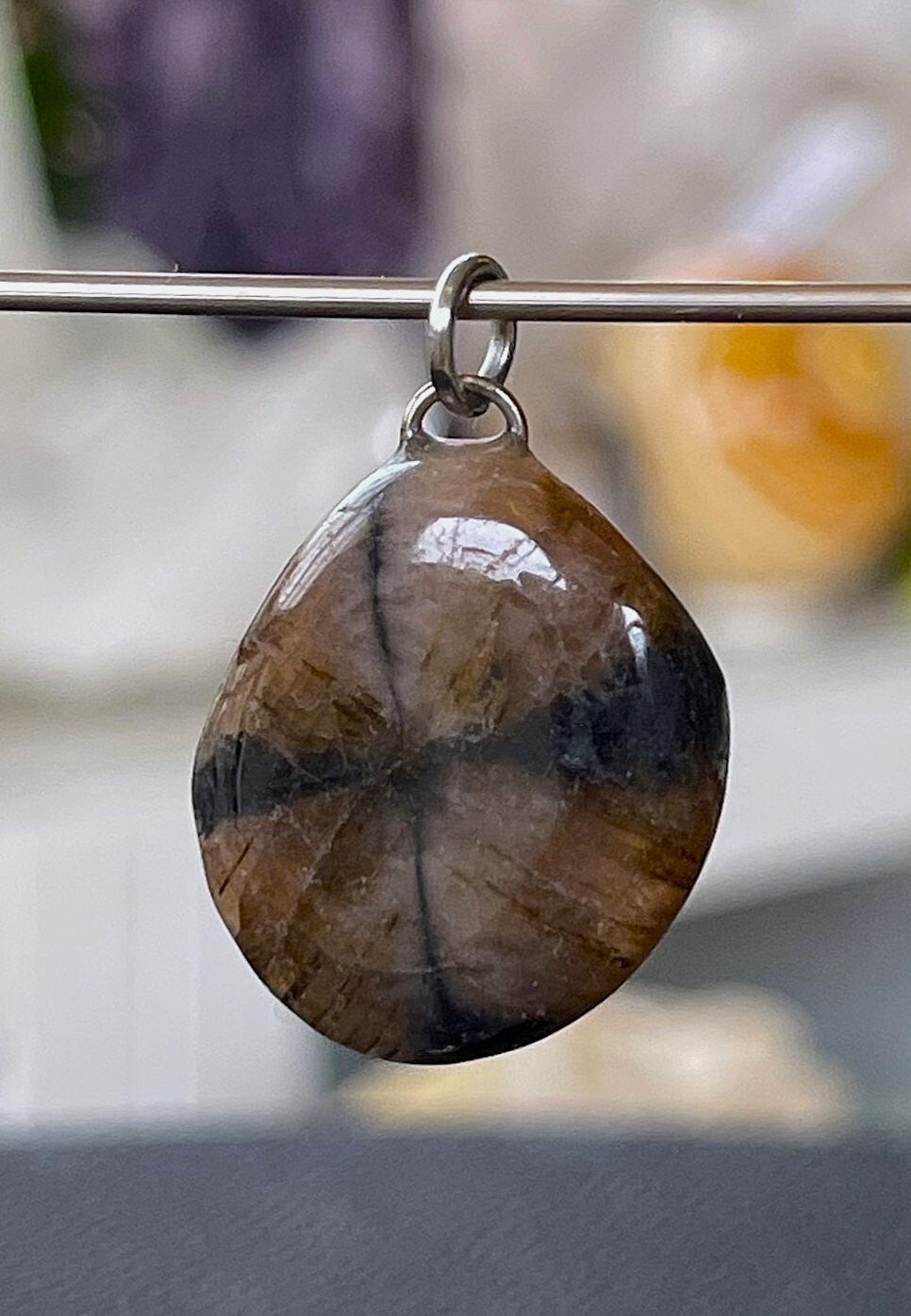 Chiastoliet hanger, ook Kruissteen genoemd, met veter