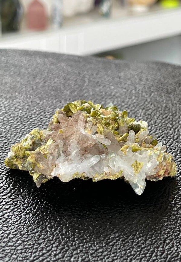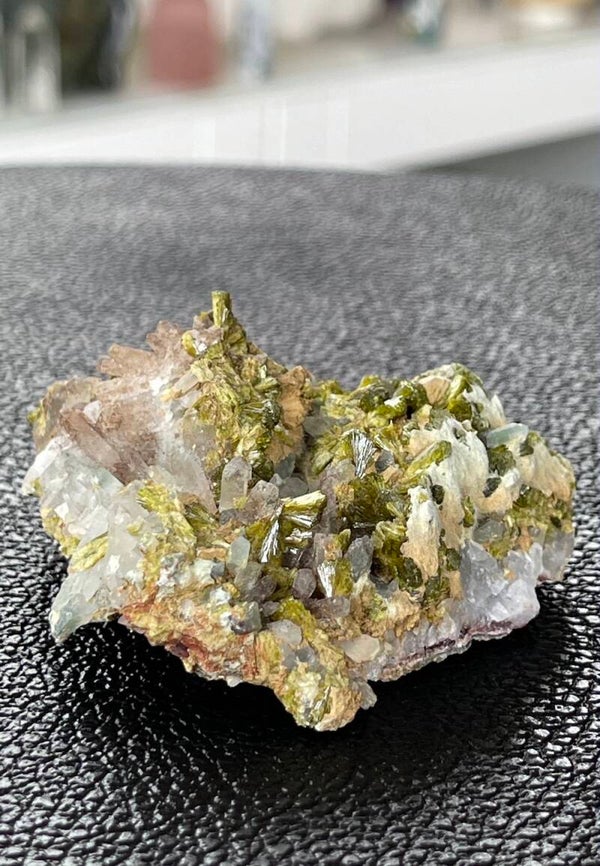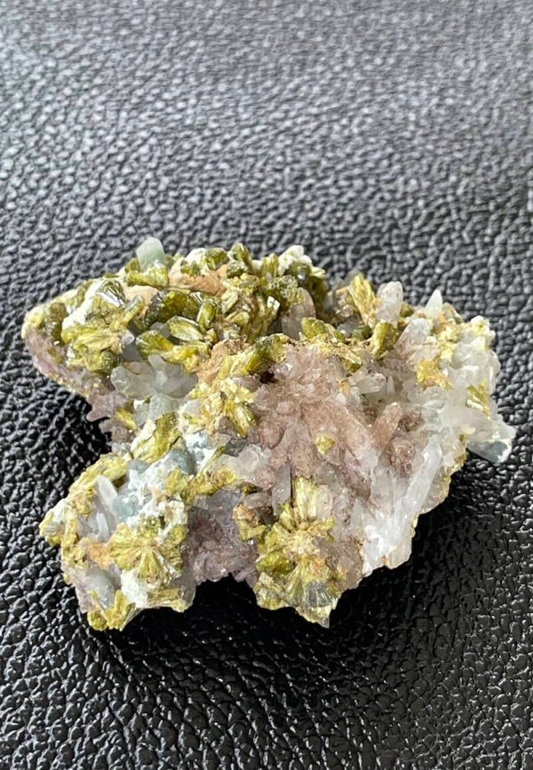 Epidoot met Calciet en Kwarts uit Marokko ruw, klein-medium