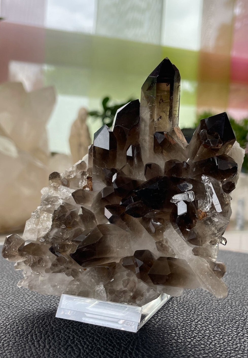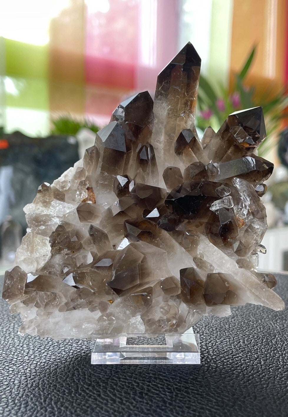Ruw stukje Rookkwarts cluster met mooie punten uit Brazilië, medium tot groot