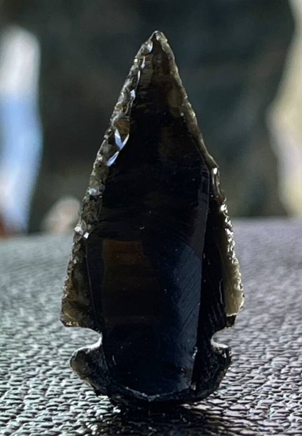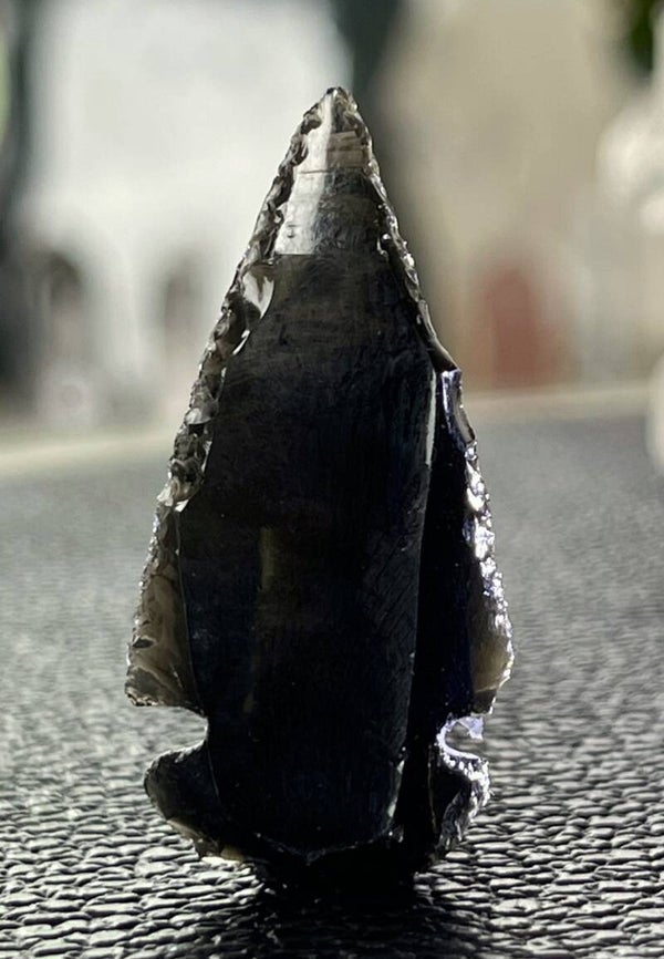 Stukje Obsidiaan uit Mexico in de vorm van een speerpunt, klein