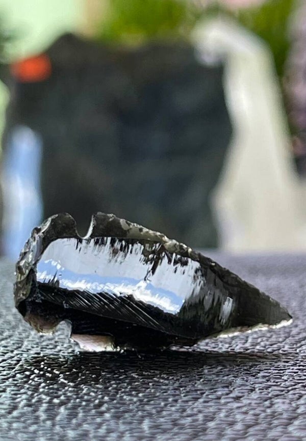 Obsidiaan uit Mexico ruw speerpuntje, klein