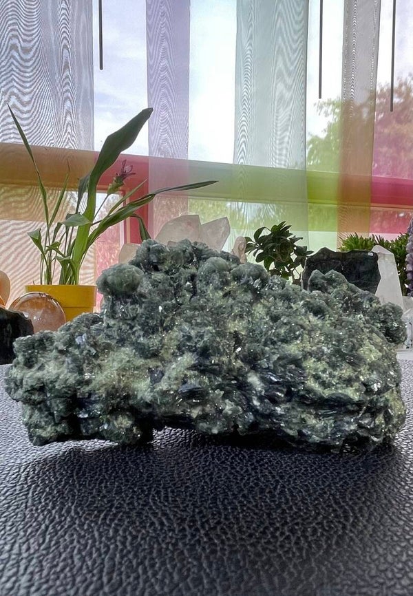 Ruw stuk donkergroene Prehniet uit Marokko, groot