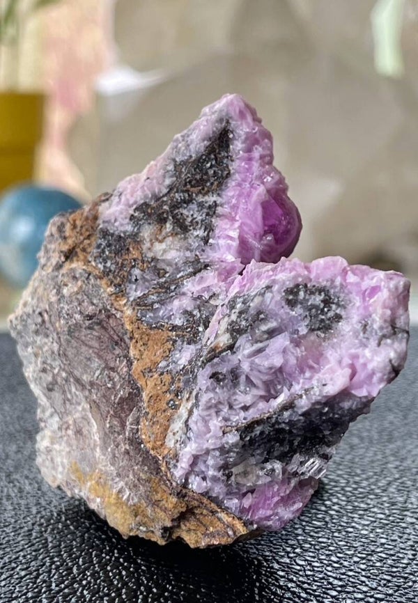 Mooi ruw stukje Cobalt Calciet op matrix uit Bou-Azzer mijn Quartzazate Marokko, gekristalliseerd, medium