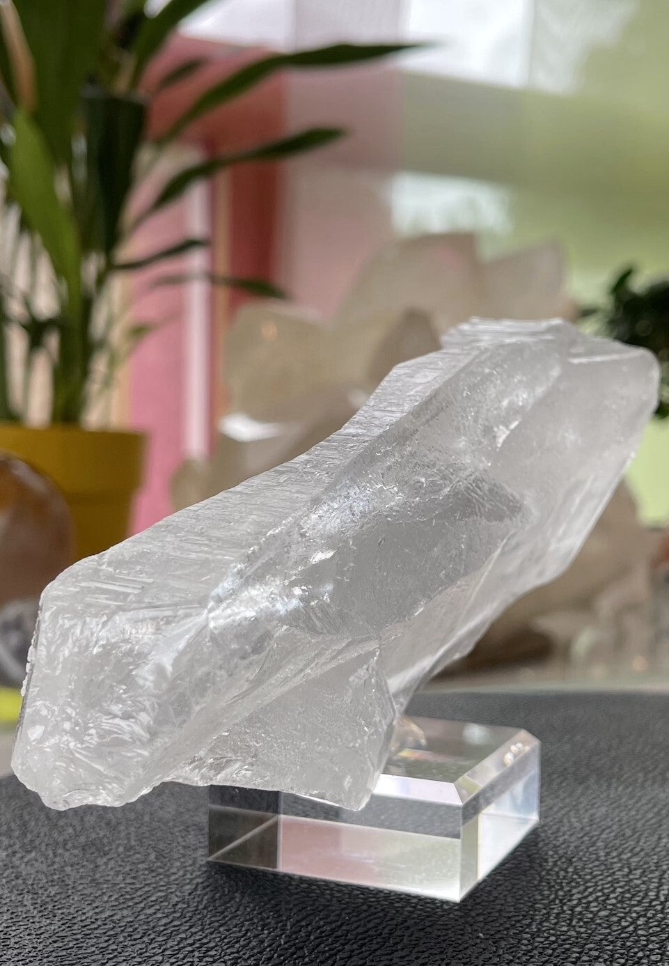 Prachtige heldere Root of Lemurian Kwarts uit Corinto, Minas Gerais, Brazilië, ruw op sokkel, groot
