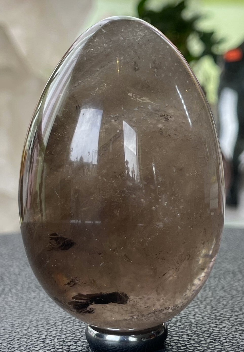 Mooi Rookkwarts ei met een prachtige glans in de steen, groot