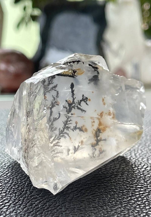 Stukje Dendriet in Kwarts ruw en gepolijst uit Brazilië, medium