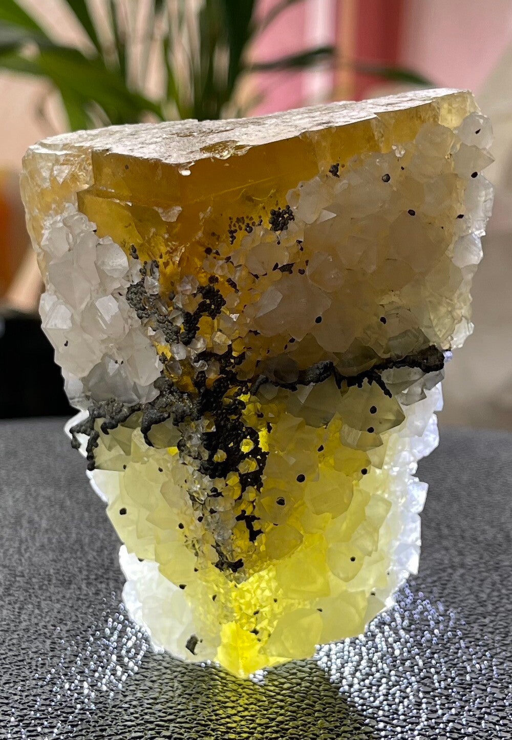 Fluoriet werkt beschermend, reinigend en stabiliserend. Beschermt tegen negatieve energie, straling van bijvoorbeeld mobiele telefoons en computers en andere negatieve invloeden van buitenaf.