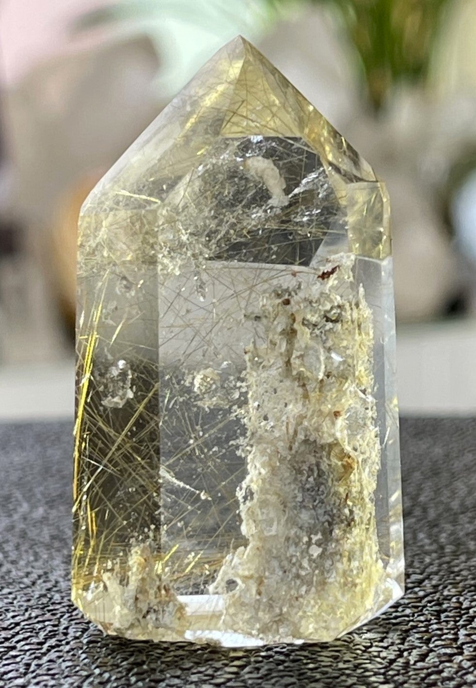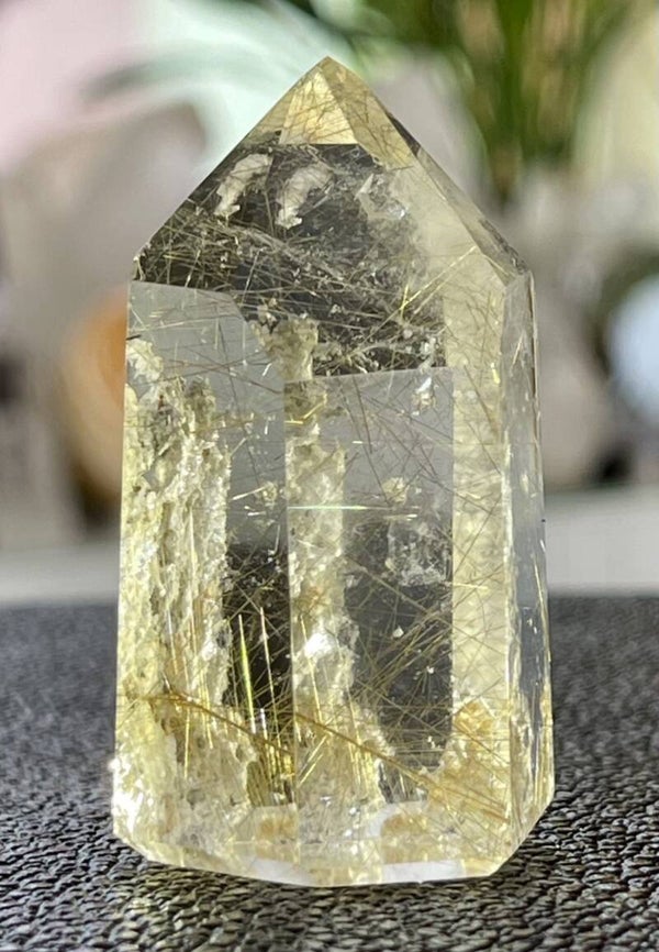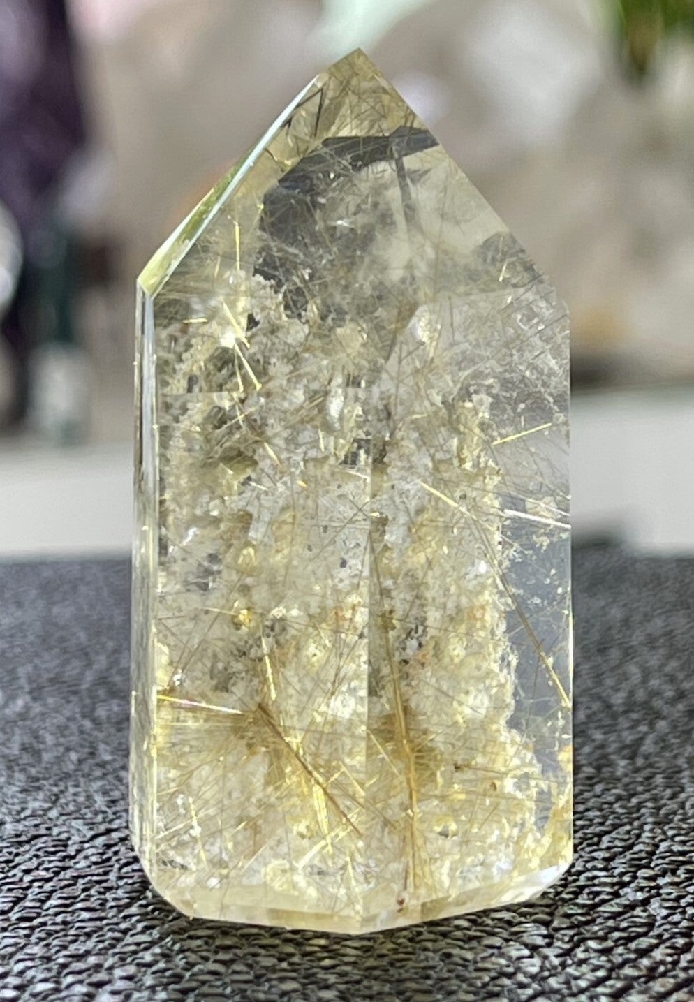 Gouden Rutielkwarts punt uit Brazilië gepolijst, medium