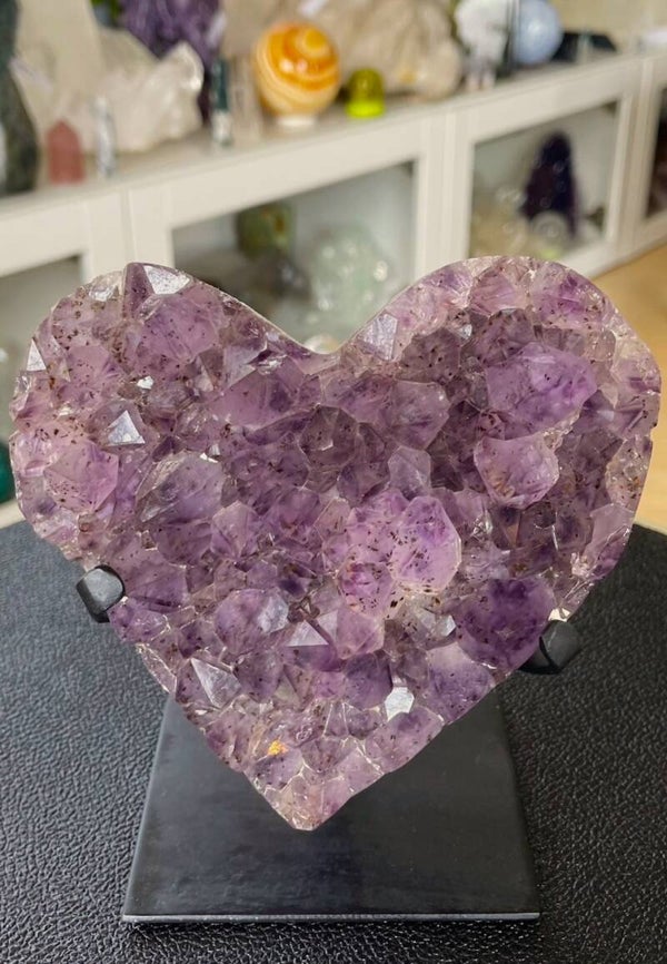 Amethist met Cacoxeniet hart uit Brazilië met standaard, groot