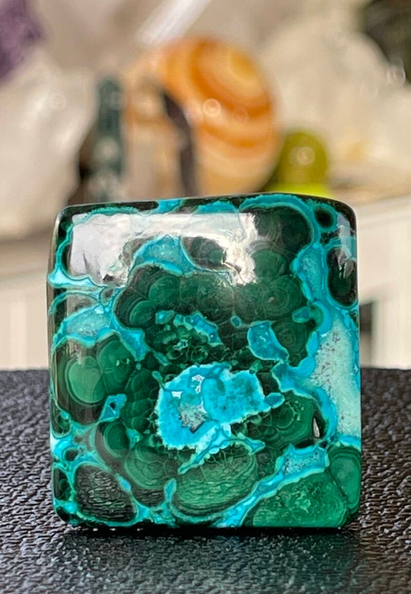 Chrysocolla Malachiet edelsteen cabochon met vlakke achterkant rechthoekig uit Congo, groot