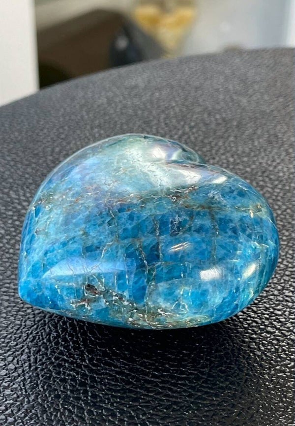 Fysiek werkt Blauwe Apatiet bloeddrukverlagend en heeft een positieve werking op klieren, organen, ogen, duizeligheid en hoofdpijn.