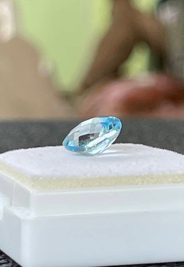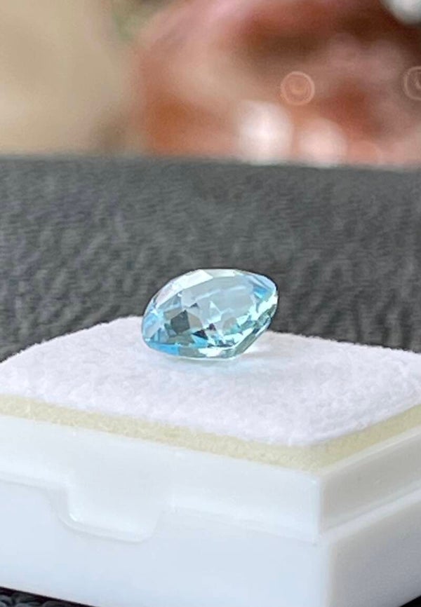 Blauwe Topaas edelsteen cushenmodel aan beide zijden checker facet geslepen, klein