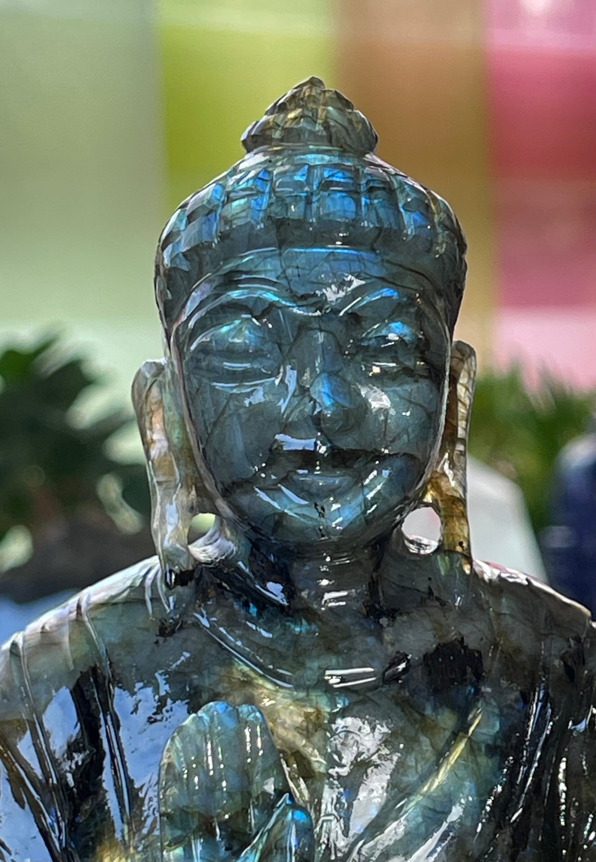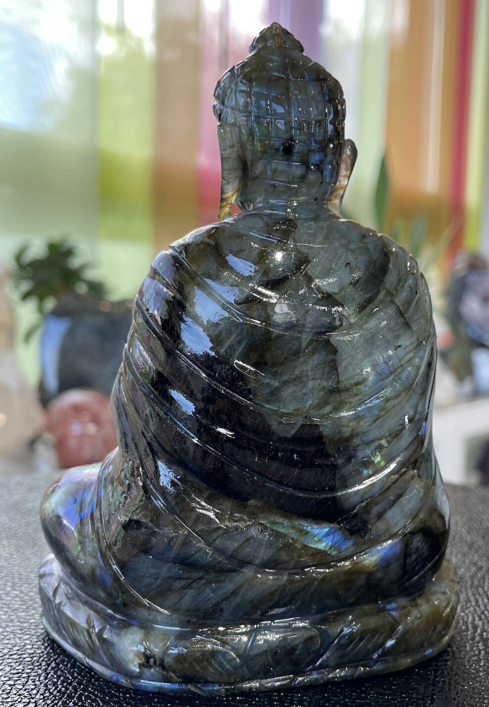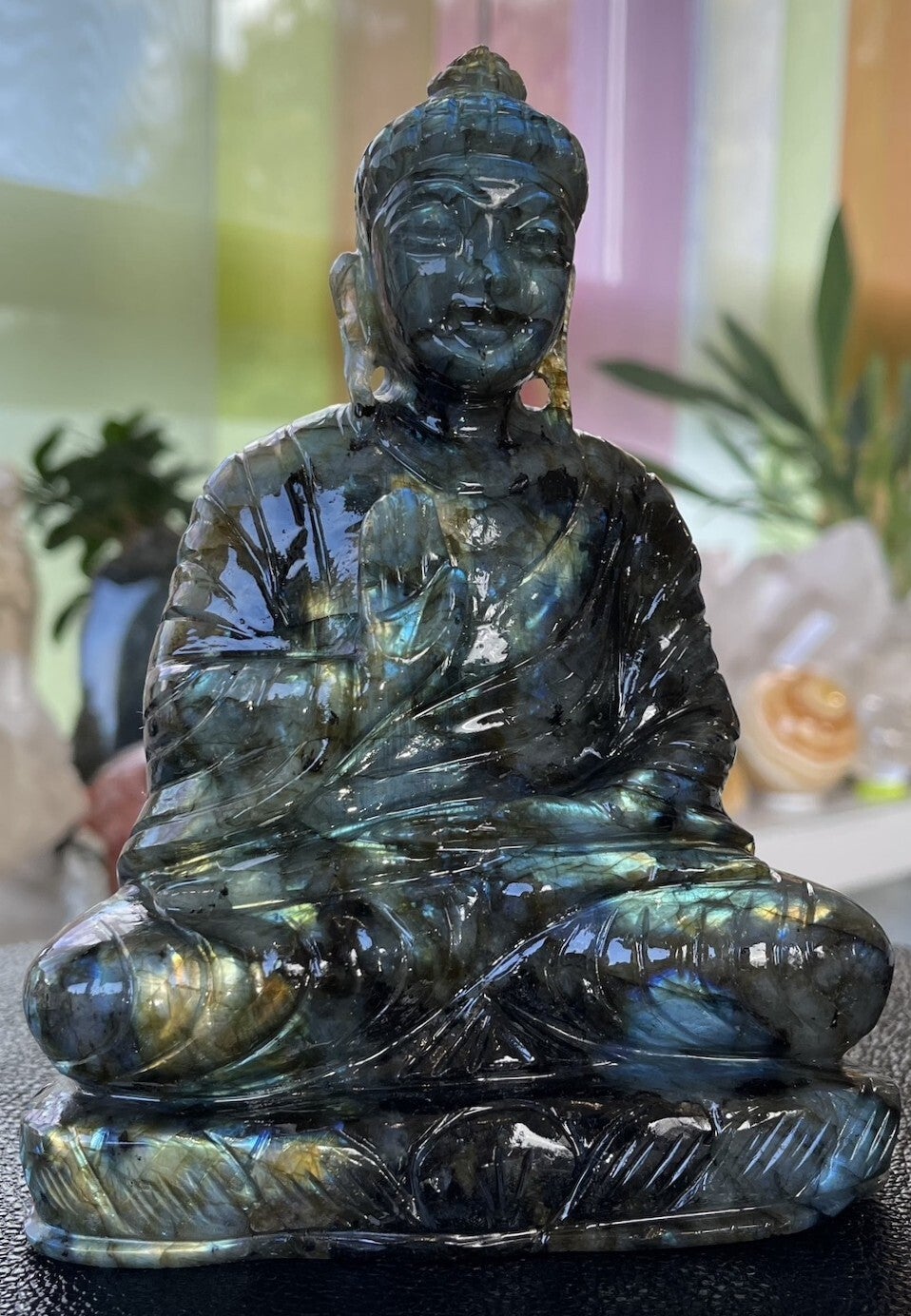 Handgemaakt mooi Boeddha beeld van Labradoriet, statue uit India, groot