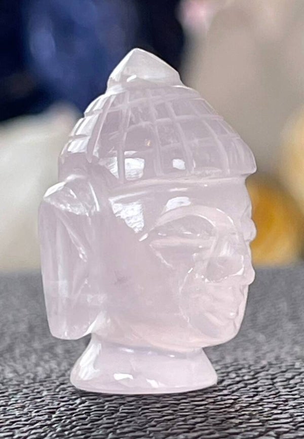 Handgemaakt Boeddha hoofdje van Rozenkwarts, statue uit India, klein